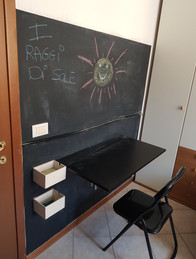 Infine, ma è un altro progetto, ho fissato al muro una scrivania "salvaspazio" marca Ikea che viene aperta solo nei momenti in cui viene utilizzata.